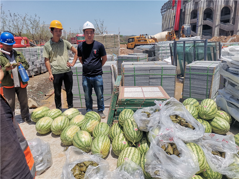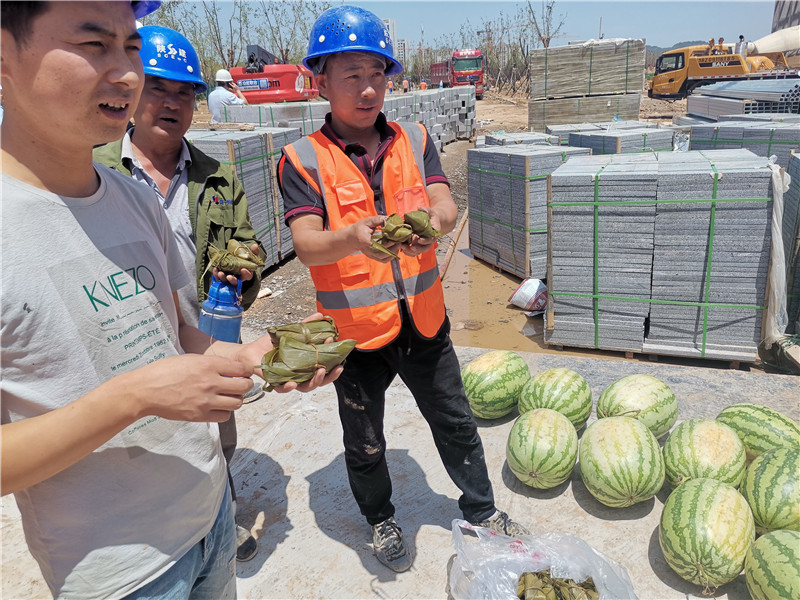 炎熱酷暑,高溫不斷,感謝一線管理人員和作業人員的辛苦奮戰,公司董事長親自趕往施工現場慰問一線人員,同時公司特意為一線施工人員帶去清涼和慰問,正值端午傳統節日,熱騰騰的糯米粽帶去真切的關懷。
