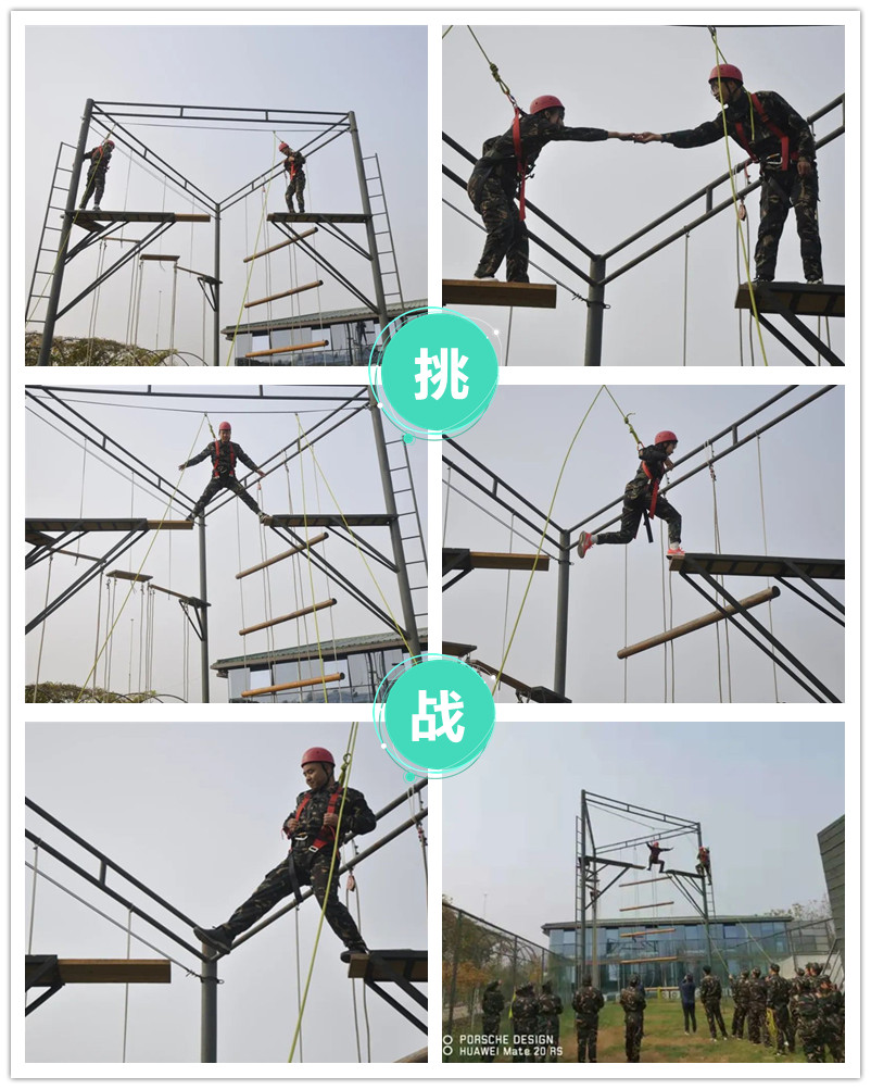 所有成員依次爬上一個(gè)8米高的斷橋,根據(jù)預(yù)設(shè)的挑戰(zhàn)目標(biāo)從一端跳到另一端,突破預(yù)設(shè)目標(biāo),挑戰(zhàn)高難度,此游戲旨在增強(qiáng)個(gè)人和團(tuán)隊(duì)的自信心、信任,克服自我設(shè)限的心理和恐懼,培養(yǎng)樂(lè)于與人相處共事的積極態(tài)度和積極向上的心態(tài),體會(huì)團(tuán)隊(duì)的鼓舞以及支持。