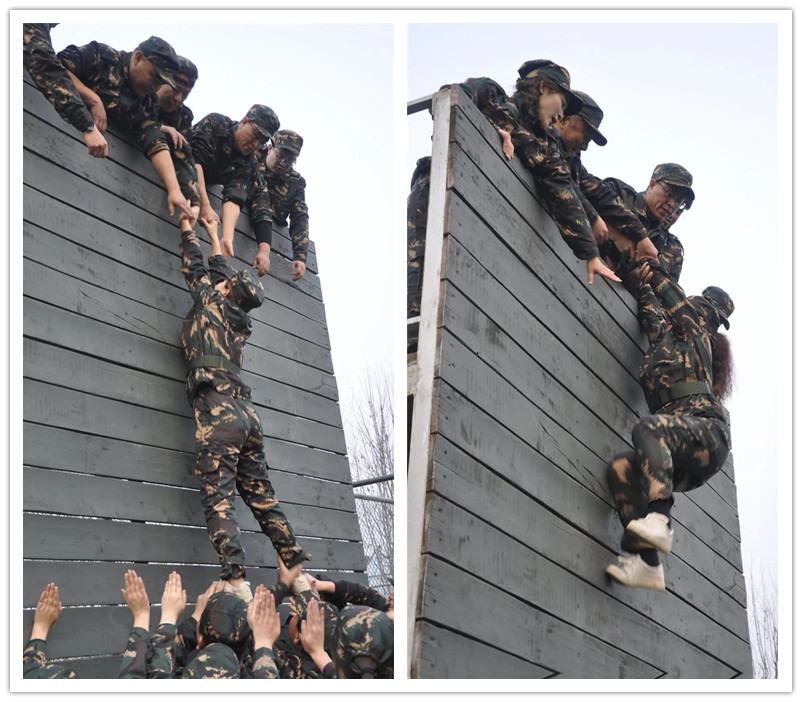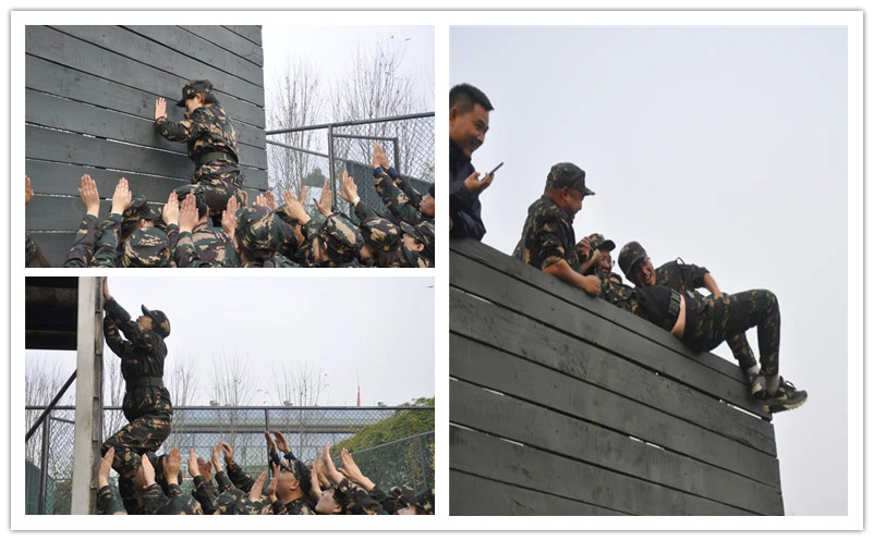 四米二的高墻,沒(méi)有任何器械幫助,純粹是團(tuán)隊(duì)力量與團(tuán)結(jié)的體現(xiàn)!此項(xiàng)目是由二戰(zhàn)時(shí)期的軍艦上的水手故事發(fā)明的,也是真正意義上的活命挑戰(zhàn)——(當(dāng)時(shí)的軍艦下層水手幾乎都是赤身的在船艙底層工作,所以沒(méi)有繩子作為工具,軍艦被擊中,即將沉沒(méi),正常出口堵塞,只有爬墻,墻高四米,無(wú)法獨(dú)立通過(guò)。)