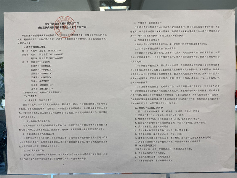 疫情期間,公司在響應國家政策下,出臺各項詳細制度,確保員工安全復工。